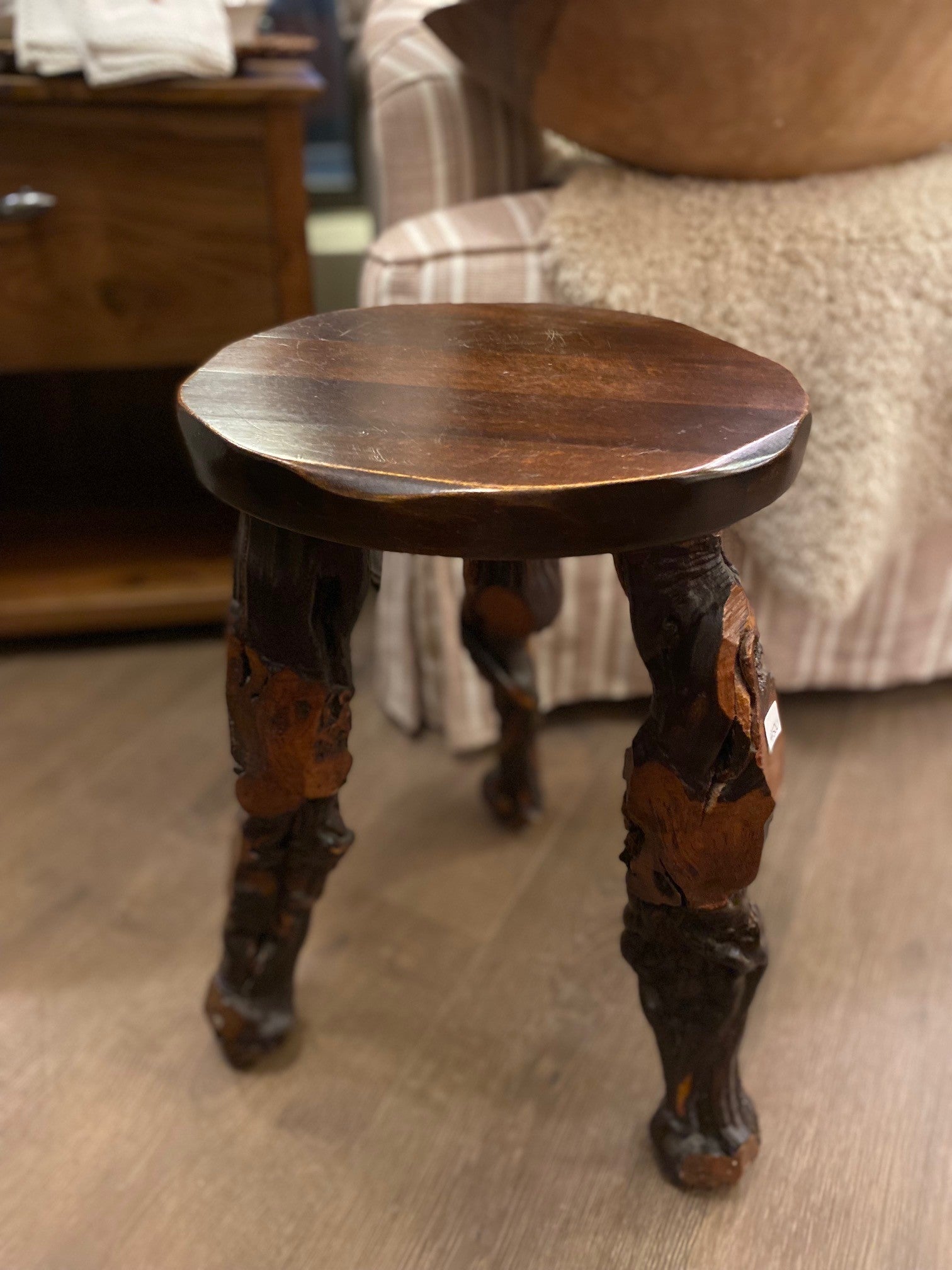 Vintage krakk fra Frankrike i heltre. Fin som sidebord i stue, som krakk på bad.