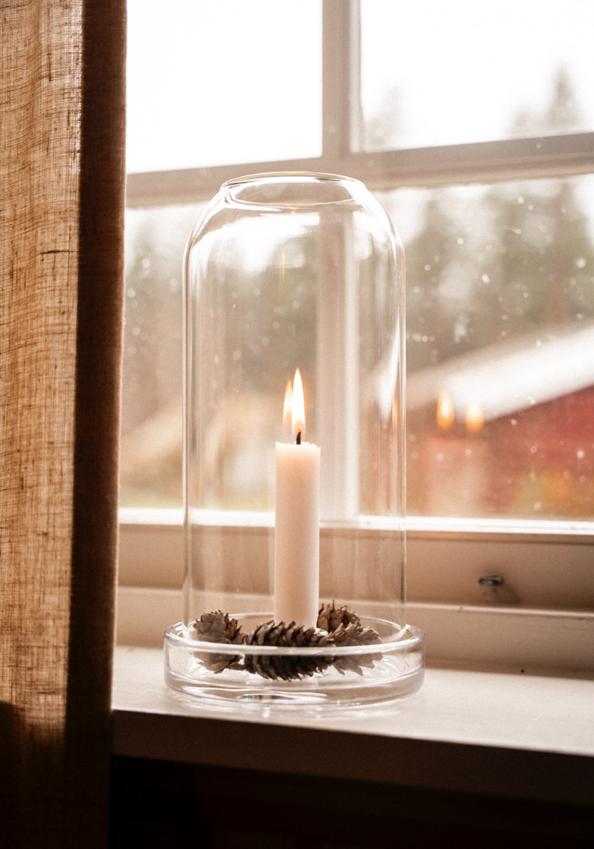 Klassisk og tidløs stormlykt i klart glass for kronelys.