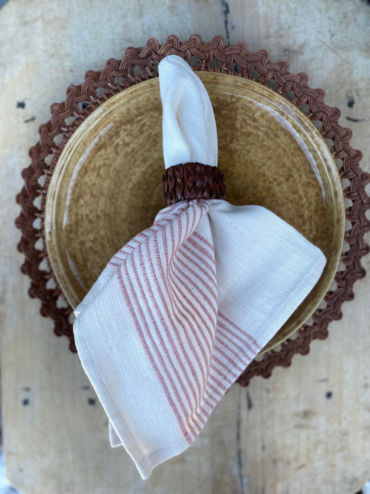 Serviett, bomull, stripet blush