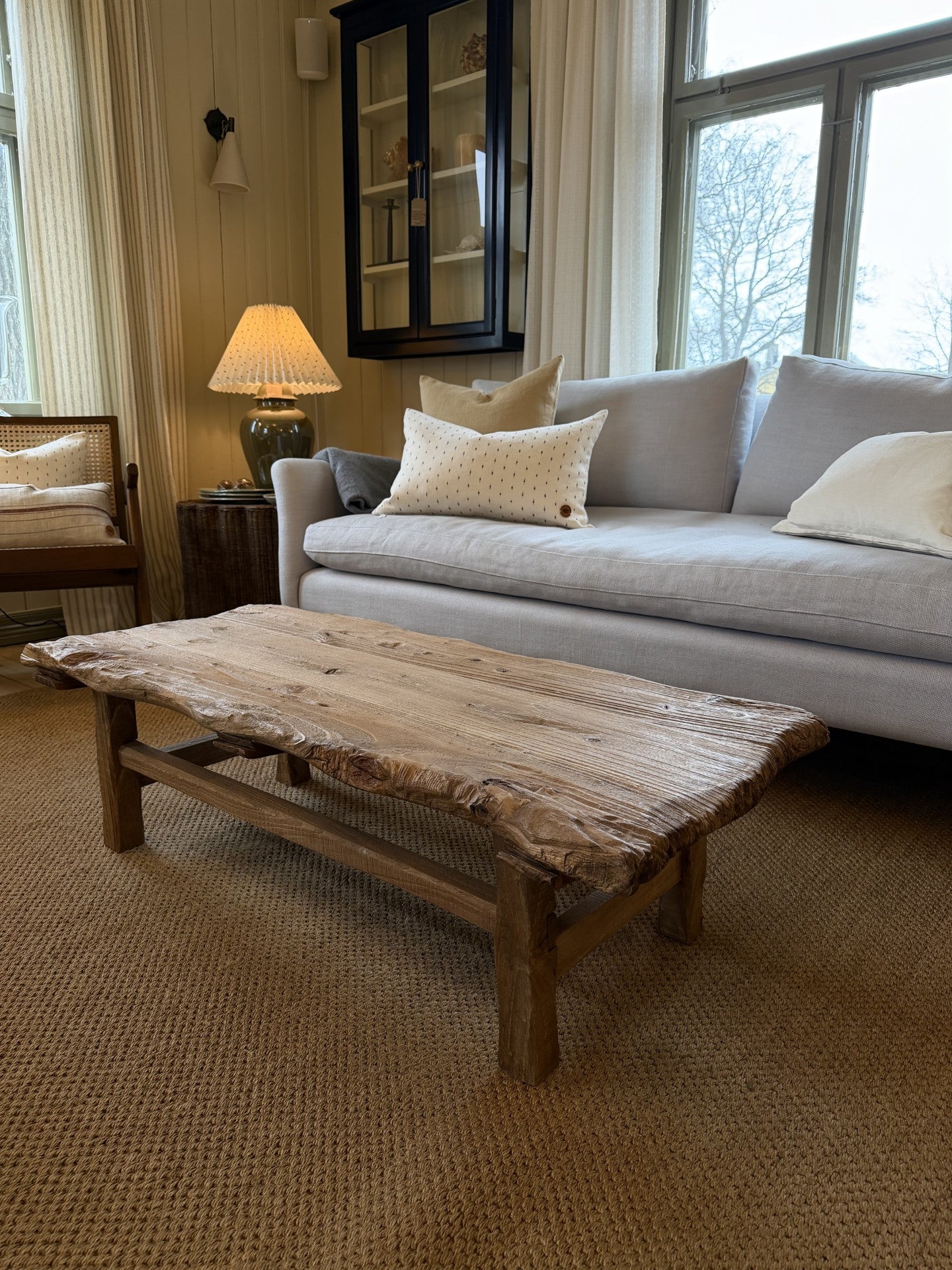 Dette vakre sofabordet kombinerer tidløst design med ekte håndverk. Laget i massivt tre med naturlige detaljer og karakteristiske merker, slik at hvert bord sitt eget unike uttrykk. Den solide konstruksjonen og det varme, rustikke preget gjør bordet til et naturlig midtpunkt i stuen – like funksjonelt som det er estetisk.