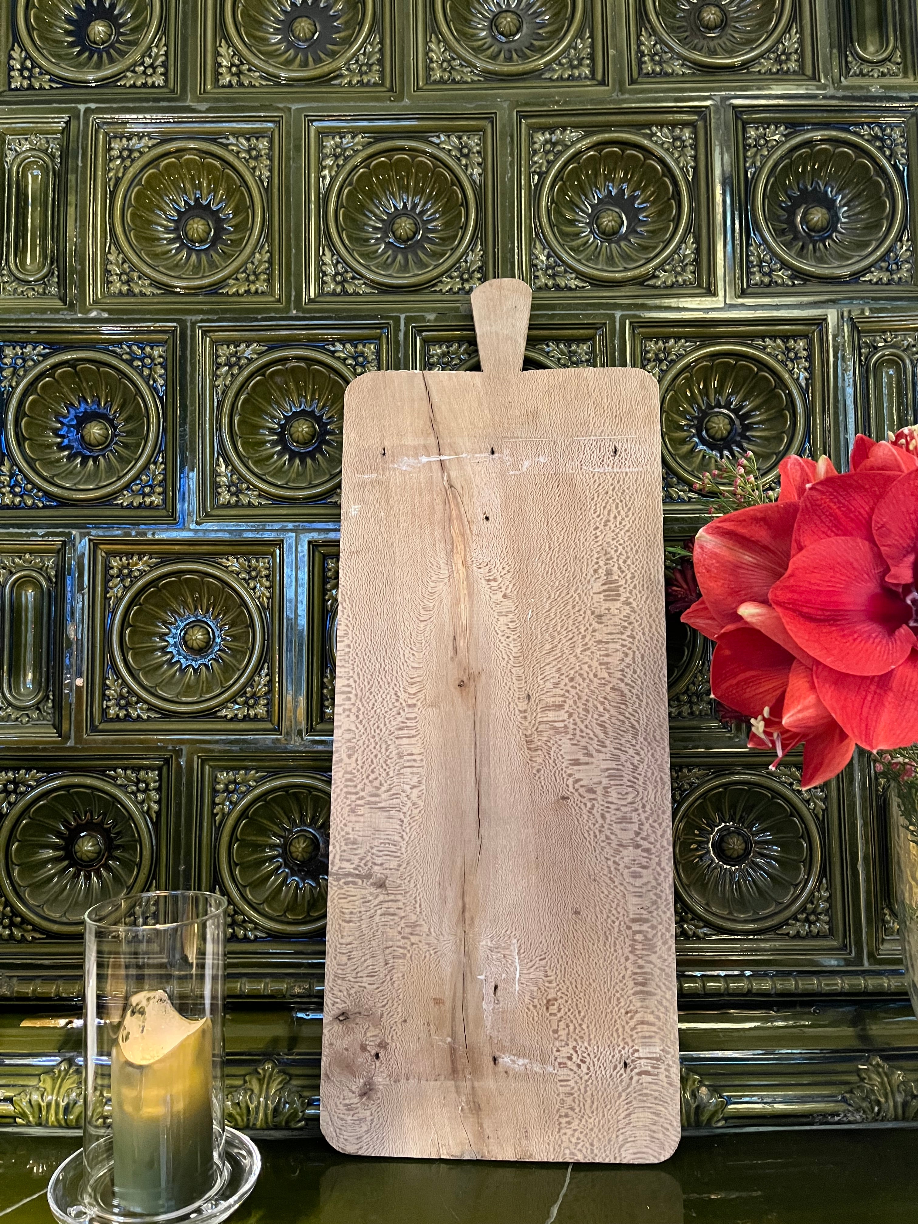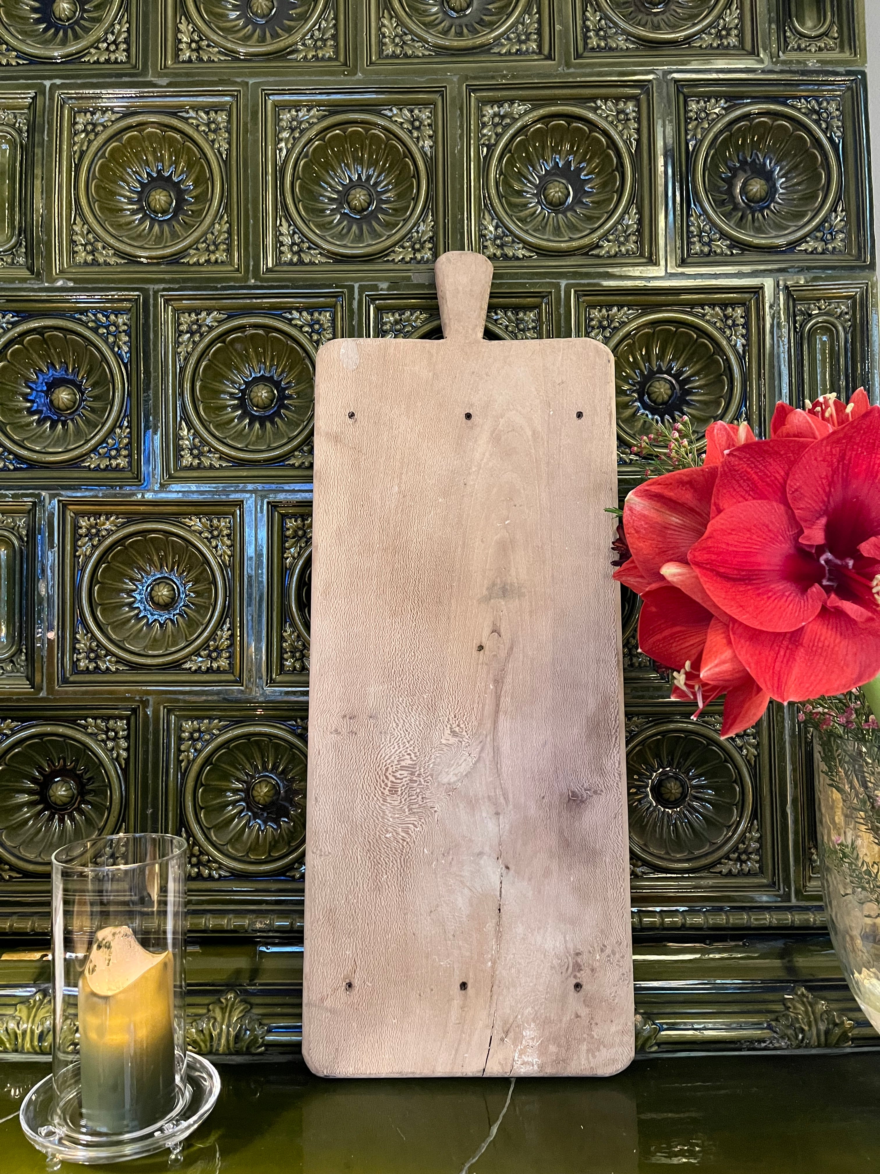 Vintage trefjøl fra Frankrike. Unik ekstra stor fjøl som tar seg godt ut på kjøkkenet. Fine på hytta og hjemme for å mykne opp et stramt kjøkken. Kan også stå på gulvet.