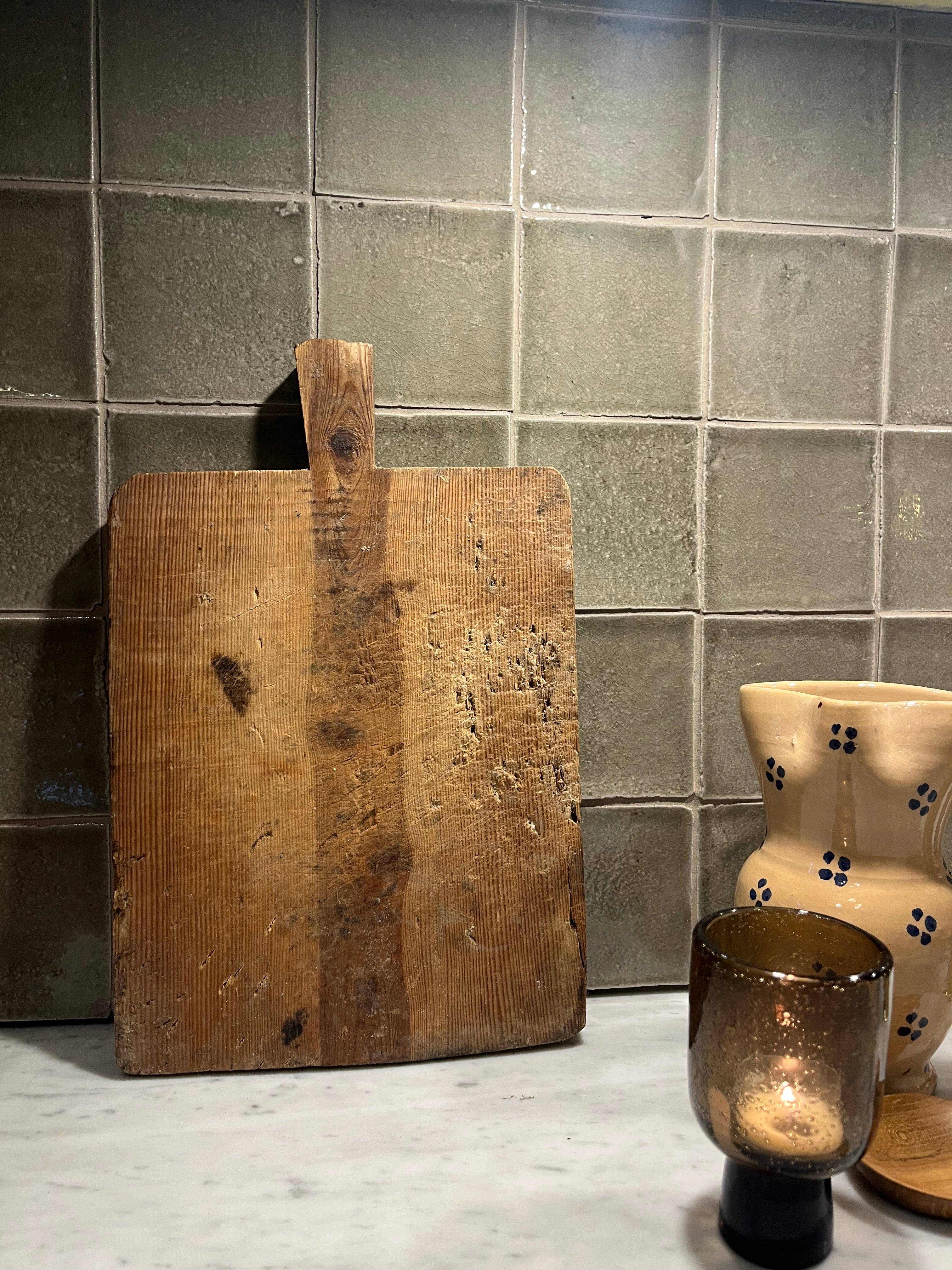 Nydelig gammel trefjøl fra Frankrike. Tar seg godt ut på kjøkkenet og skaper en varm atmosfære.