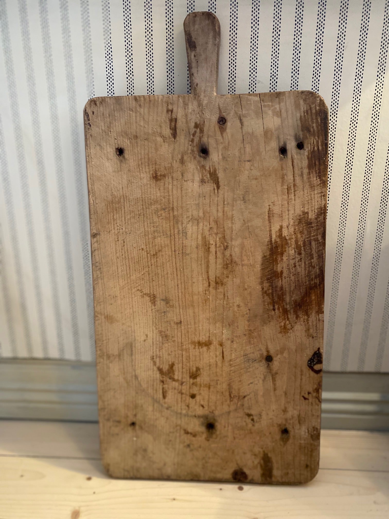 Vintage trefjøl fra Frankrike. Unik fjøl som tar seg godt ut på kjøkkenet og skaper en varm atmosfære. Fine på hytta og til servering.