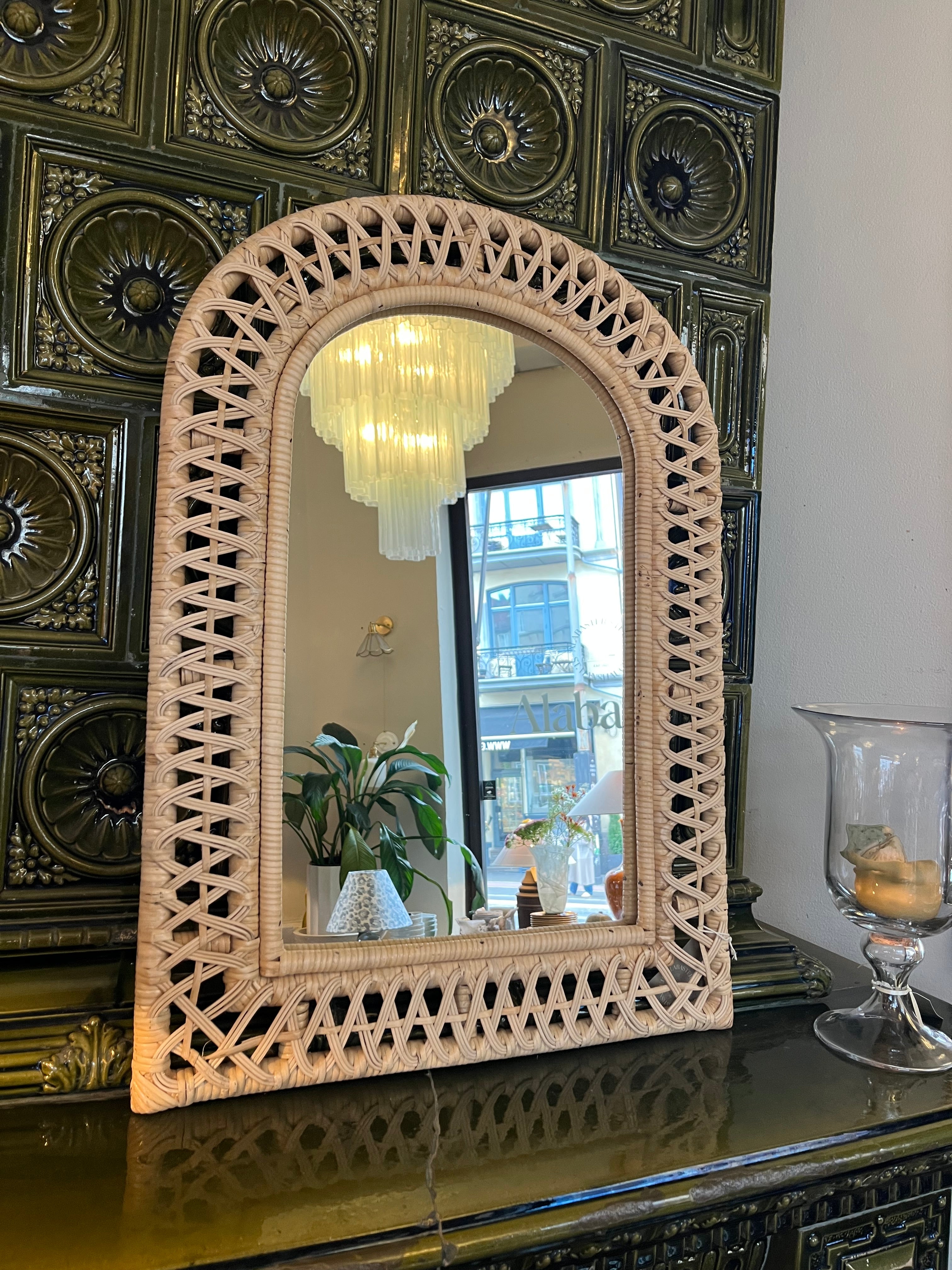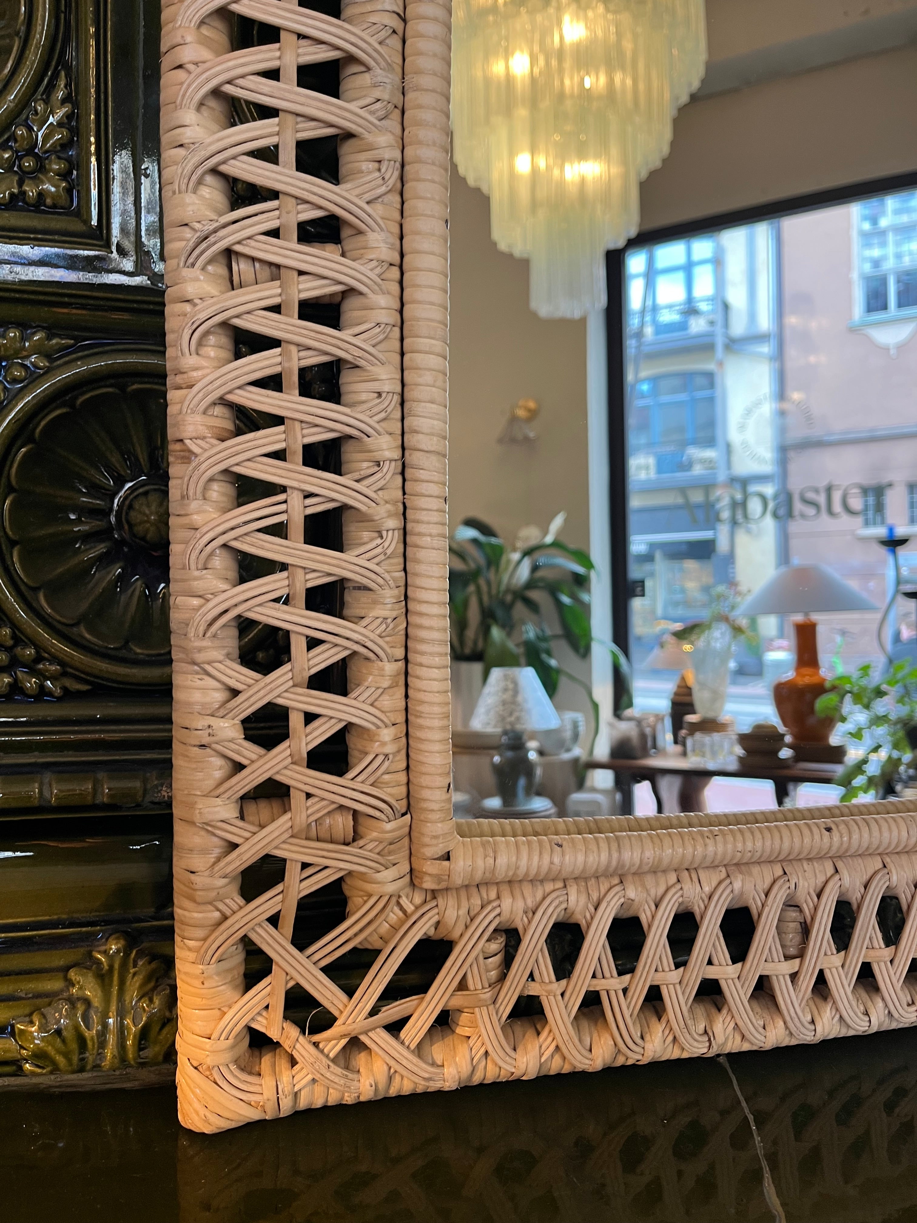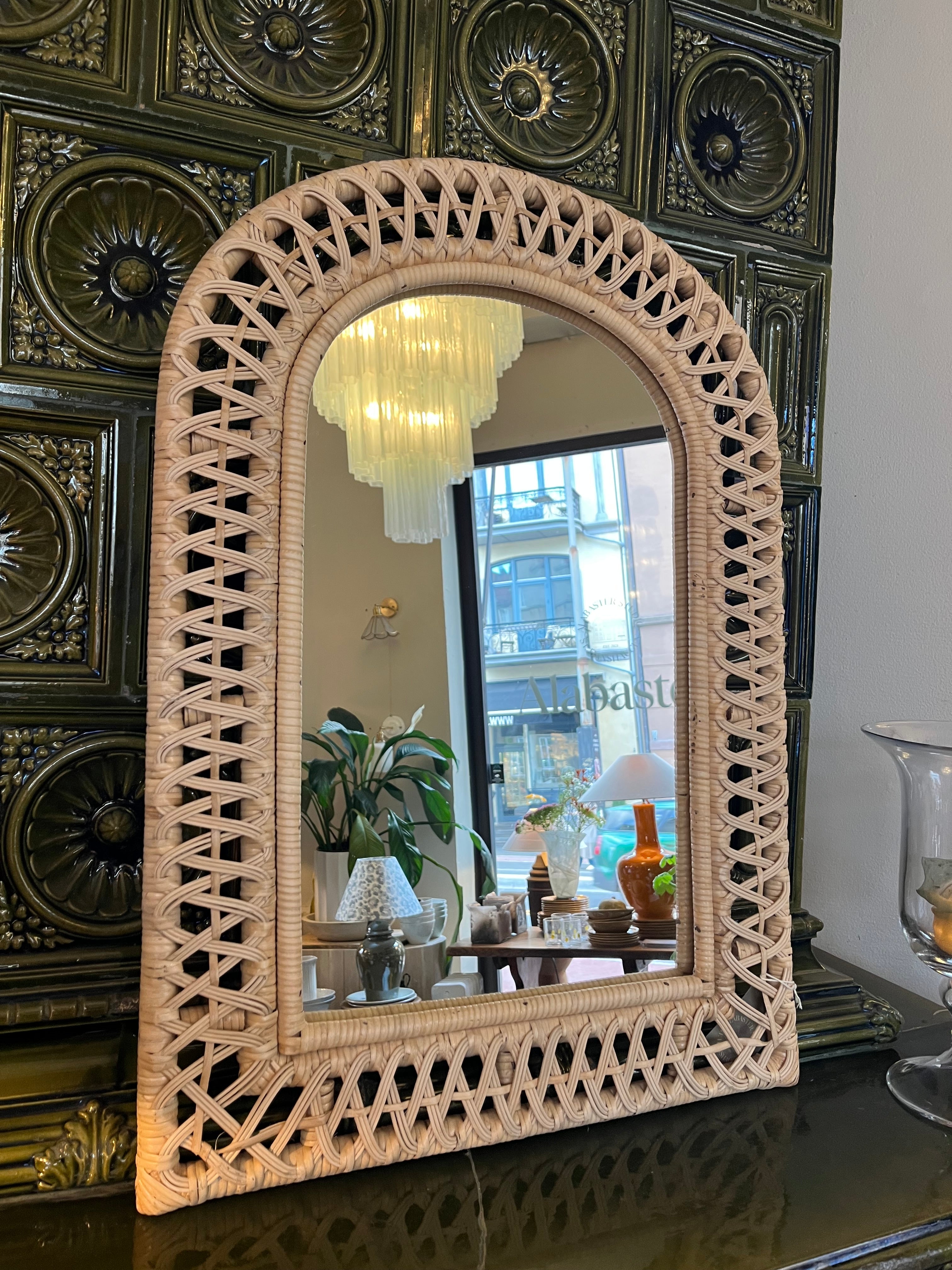 Nydelig håndlaget speil med ramme i rotting. Passer godt i gangen, stuen eller soverommet.