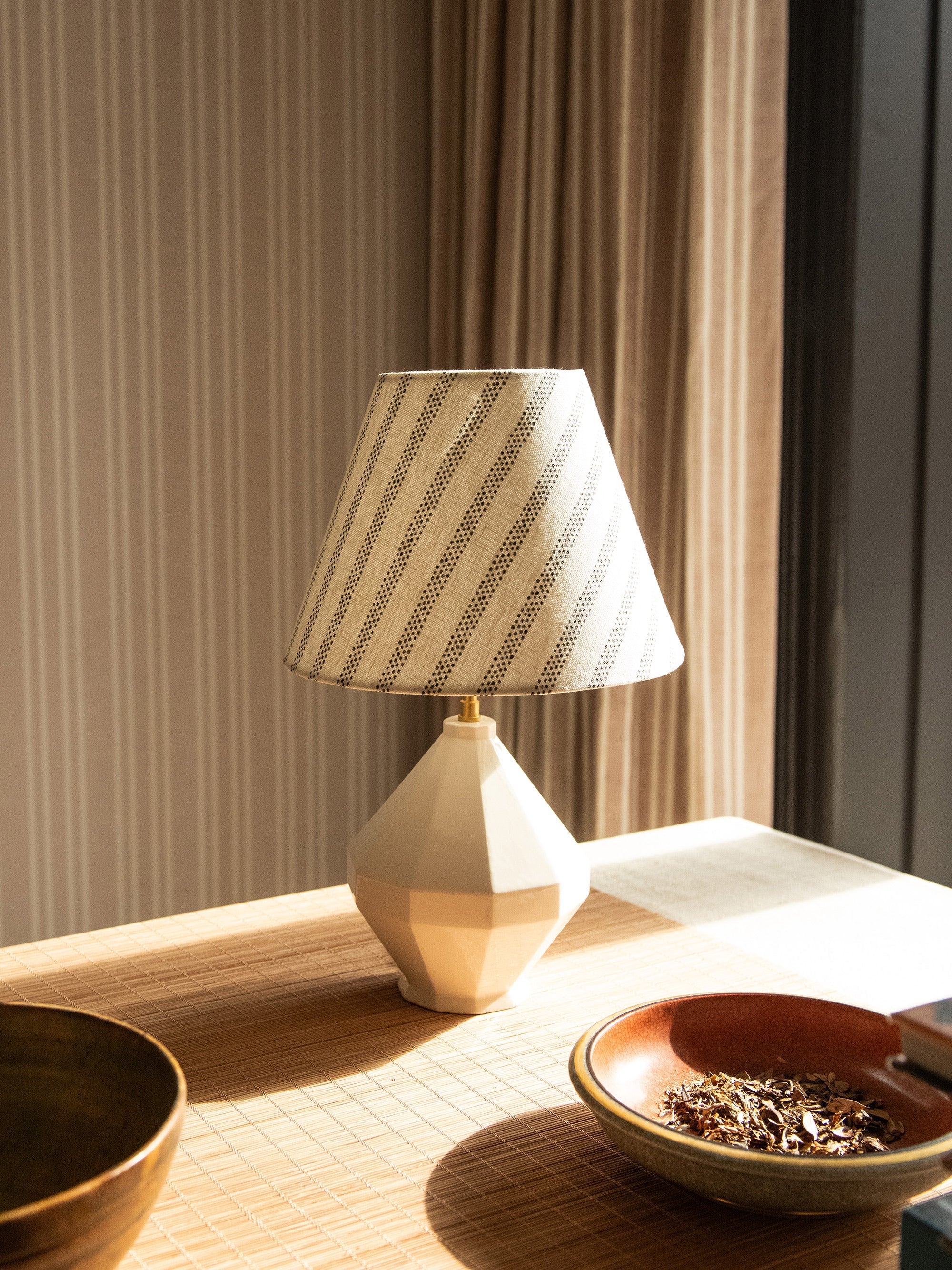Helene Blanche Lampeskjerm, Polka Stripe Crème Noir