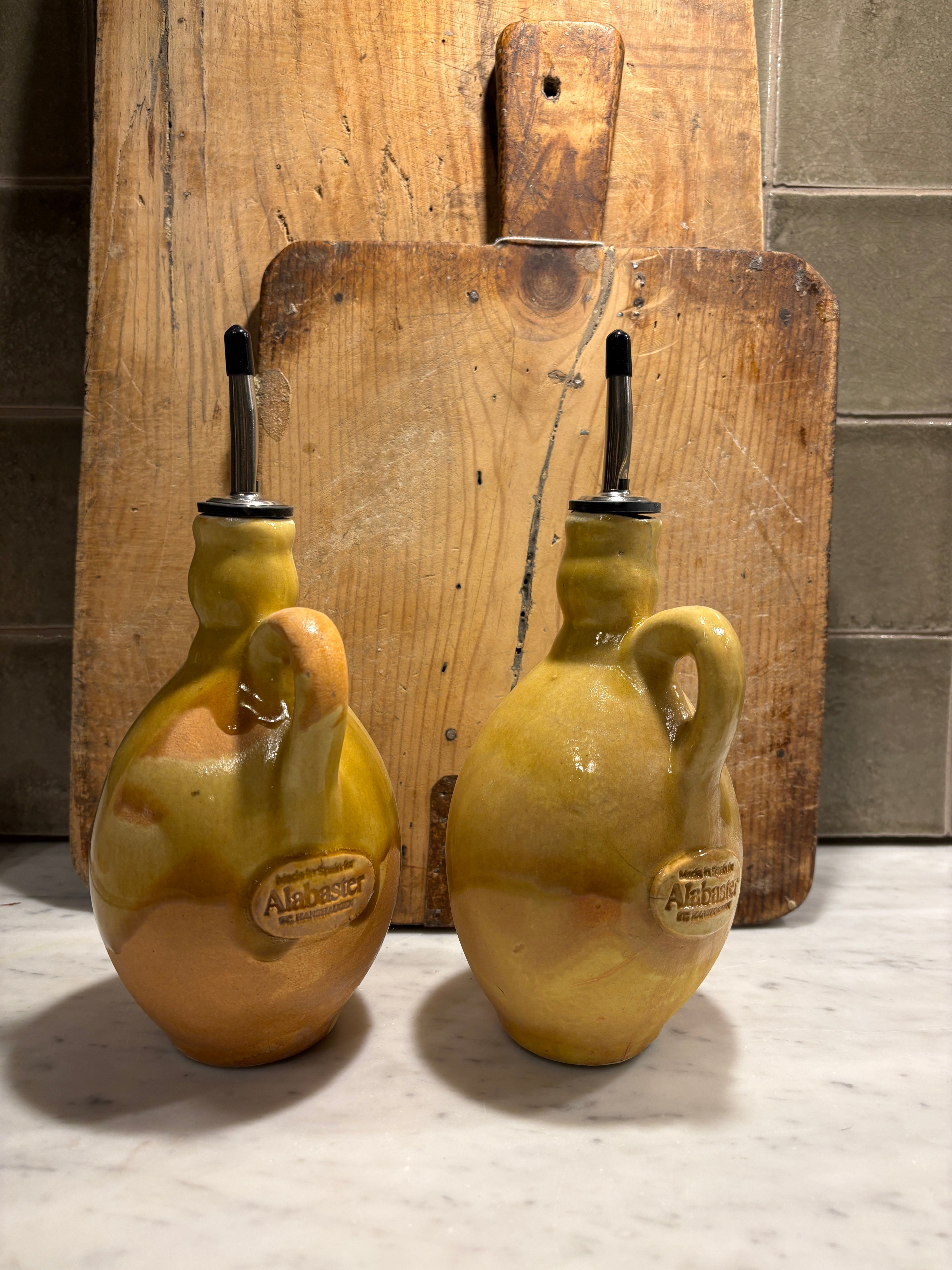 Denne olivenoljeflasken har blitt selve signaturen vår – et ikonisk innslag i hjemmene til våre kunder siden vi åpnet dørene i 2021. Etter en lang og tålmodig leting etter en vakker flaske som kunne få stå fremme på kjøkkenbenken med stolthet, førte veien oss til en liten, familiedrevet keramikkverksted i hjertet av Sevilla. Sammen utviklet vi vårt helt eget design – formet for hånd, brent med omtanke, og glasert i farger vi selv falt pladask for.