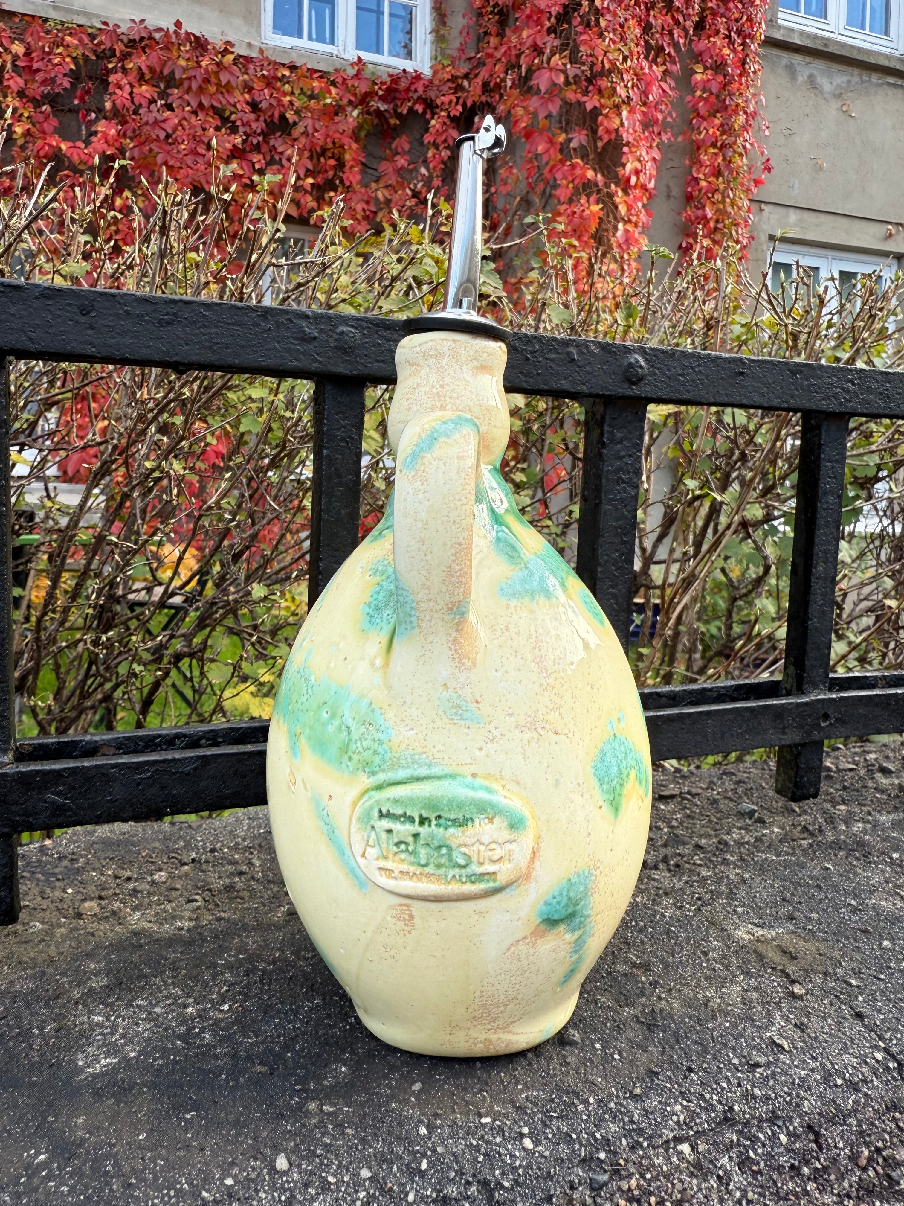 Denne olivenoljeflasken har blitt selve signaturen vår – et ikonisk innslag i hjemmene til våre kunder siden vi åpnet dørene i 2021. Etter en lang og tålmodig leting etter en vakker flaske som kunne få stå fremme på kjøkkenbenken med stolthet, førte veien oss til en liten, familiedrevet keramikkverksted i hjertet av Sevilla. Sammen utviklet vi vårt helt eget design – formet for hånd, brent med omtanke, og glasert i farger vi selv falt pladask for.