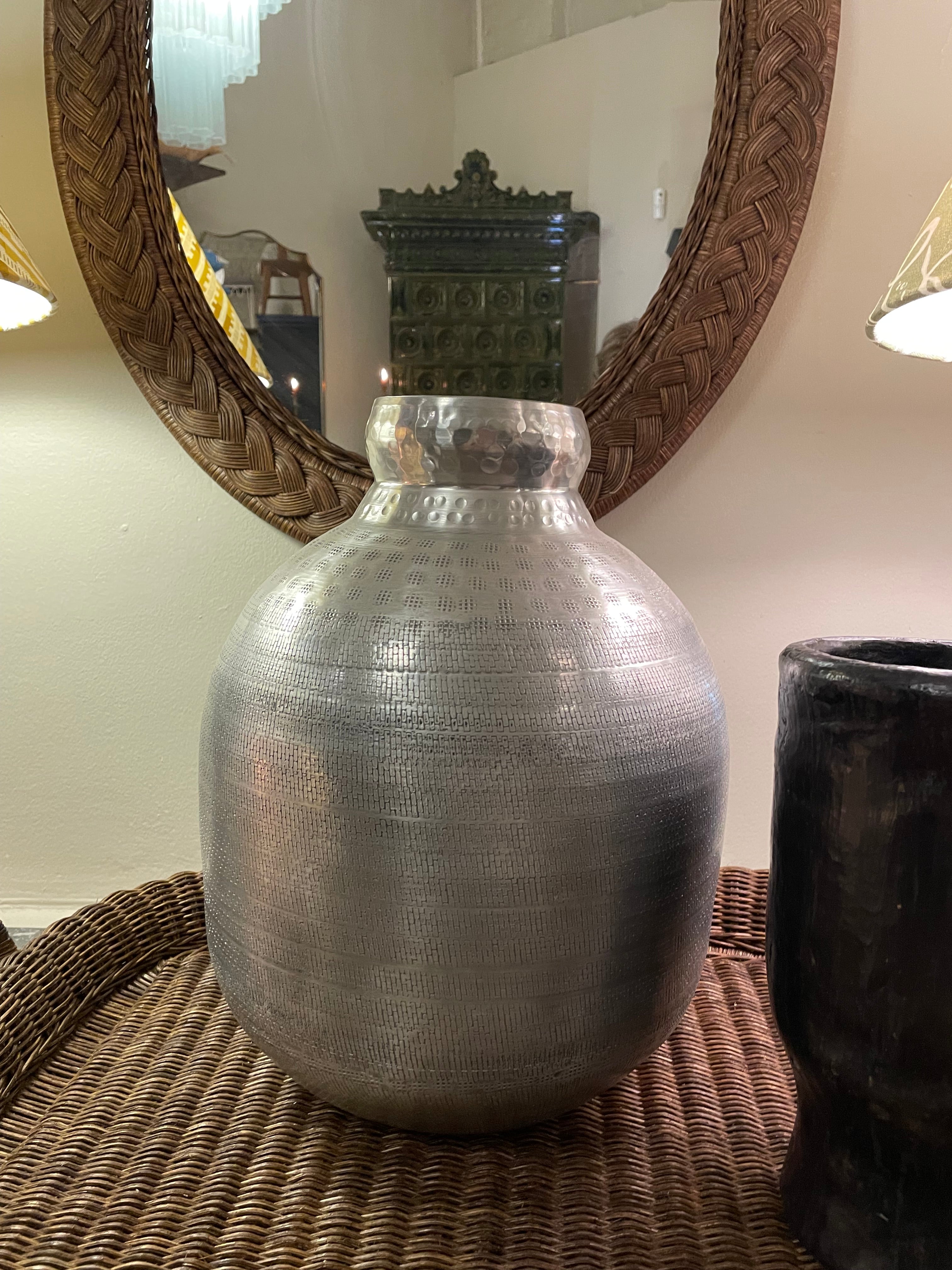 Rustikk stål krukke som gir et tøffer uttrykk.