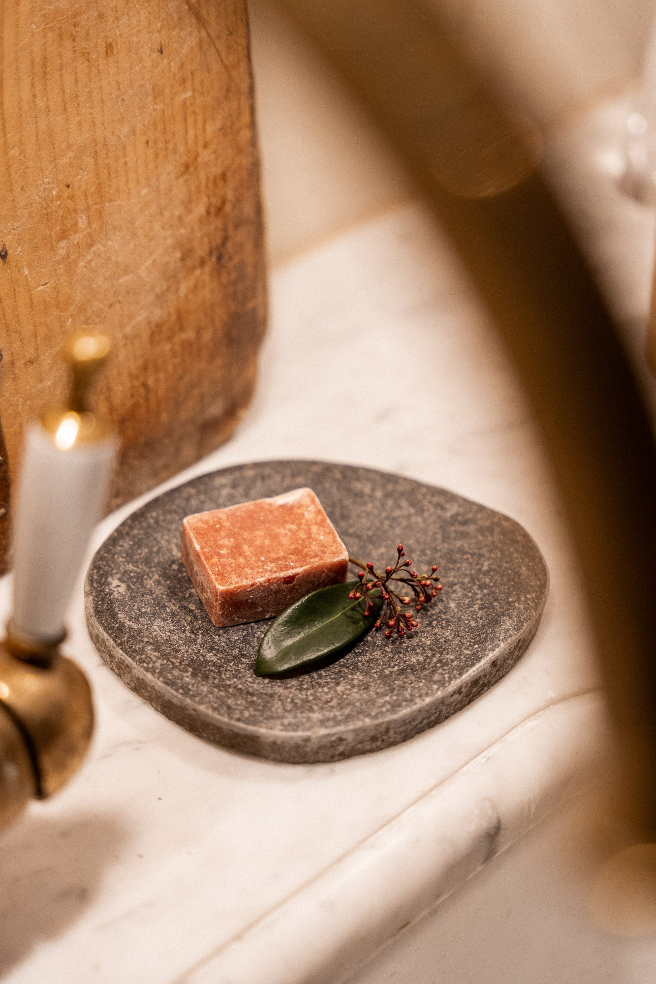 Lekker såpeskål i steinmateriale. Hver skål er unik og målene vil derfor variere noe.