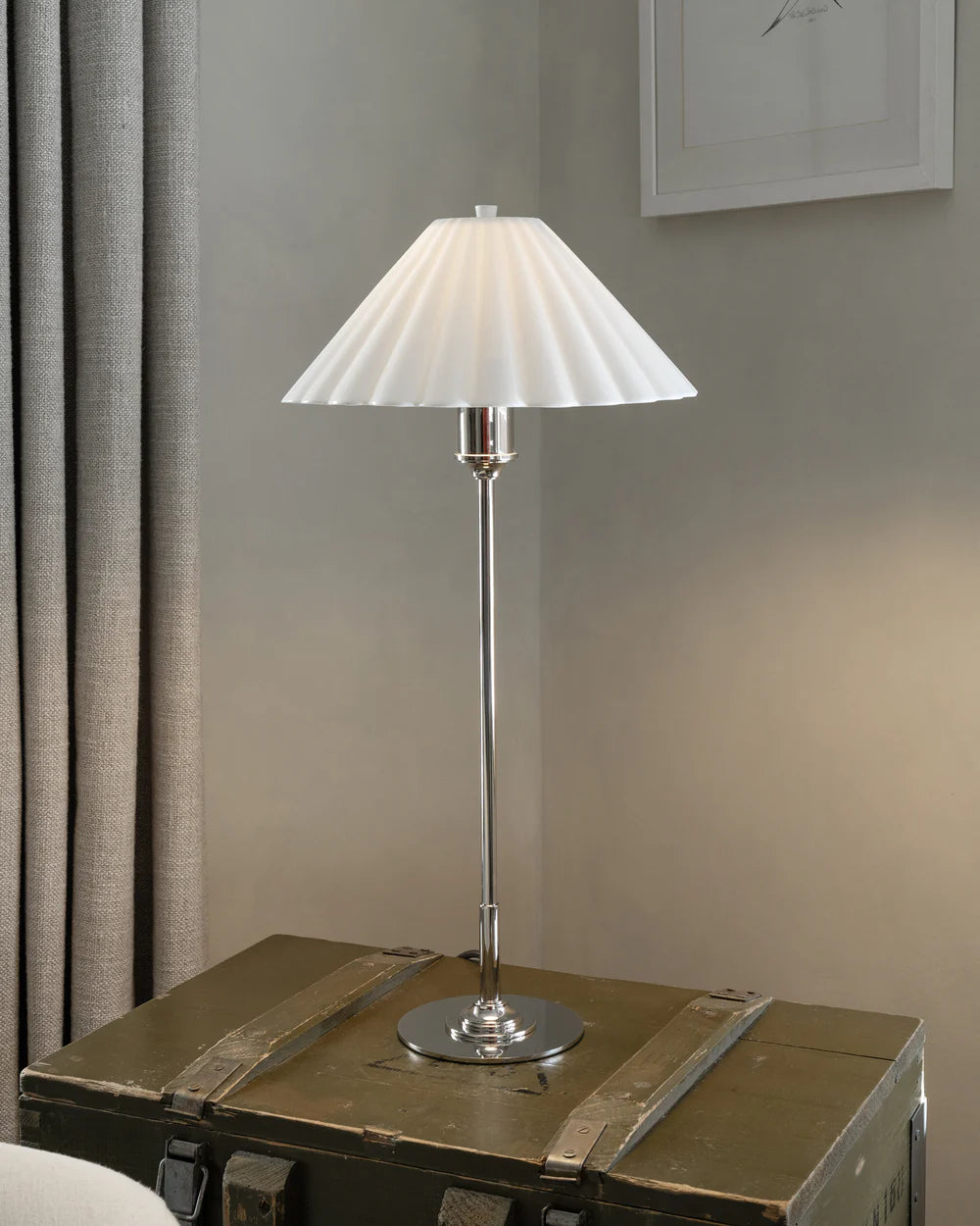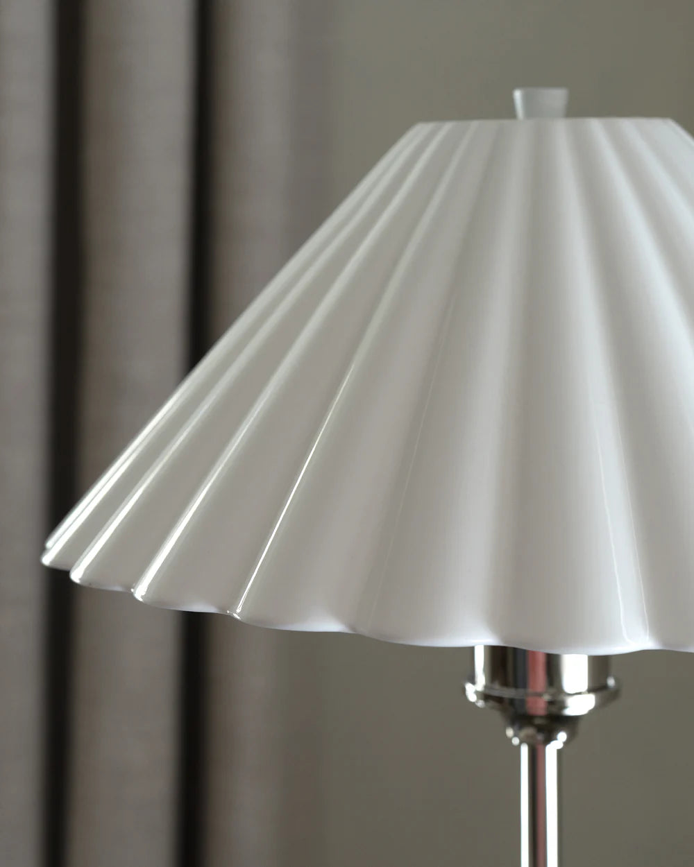 Vakker bordlampe laget av nikkel, kombinert sammen med en elegant porselensskjerm som gir varm & stemningsfull belysning til hjemmet ditt.