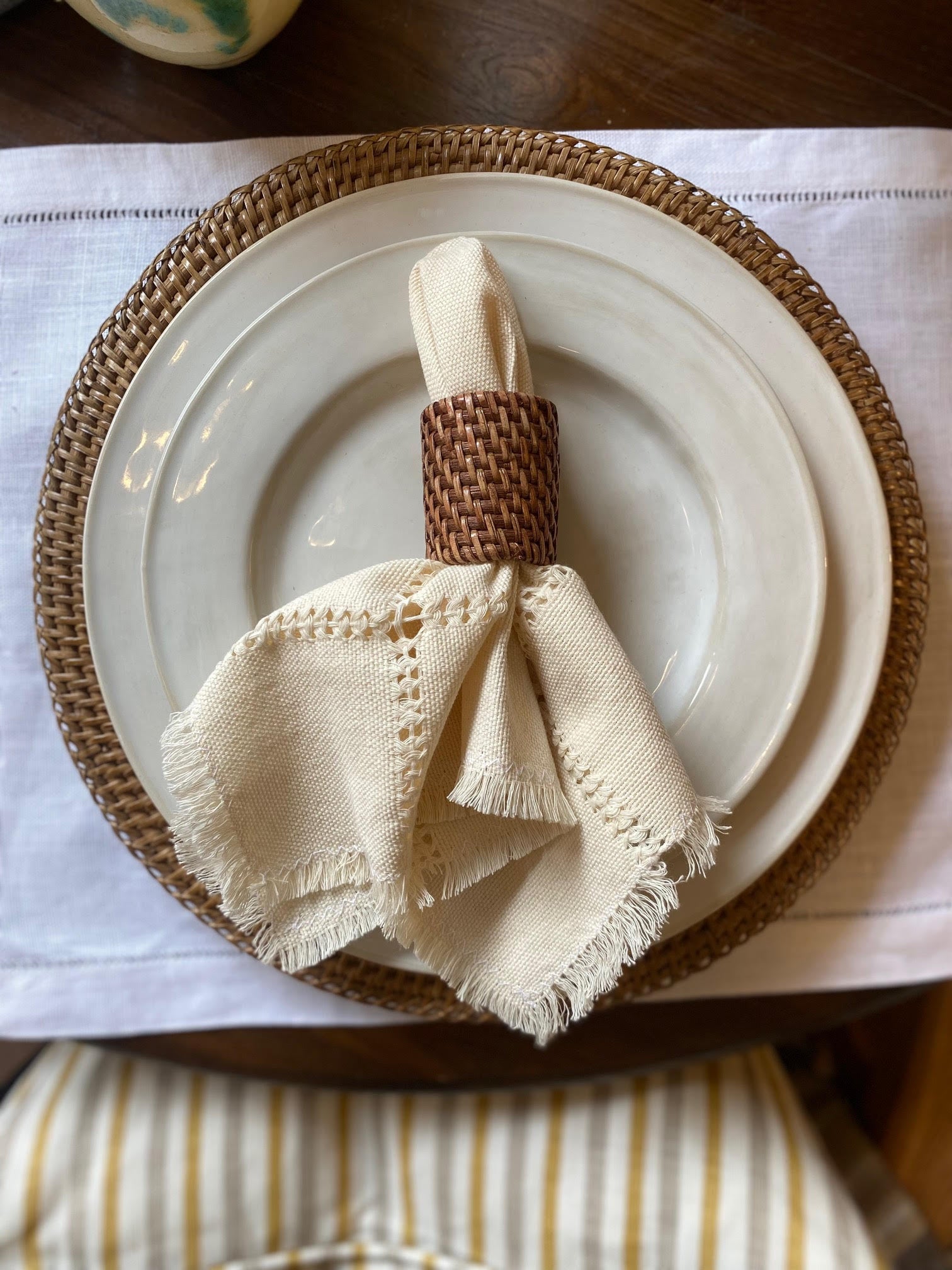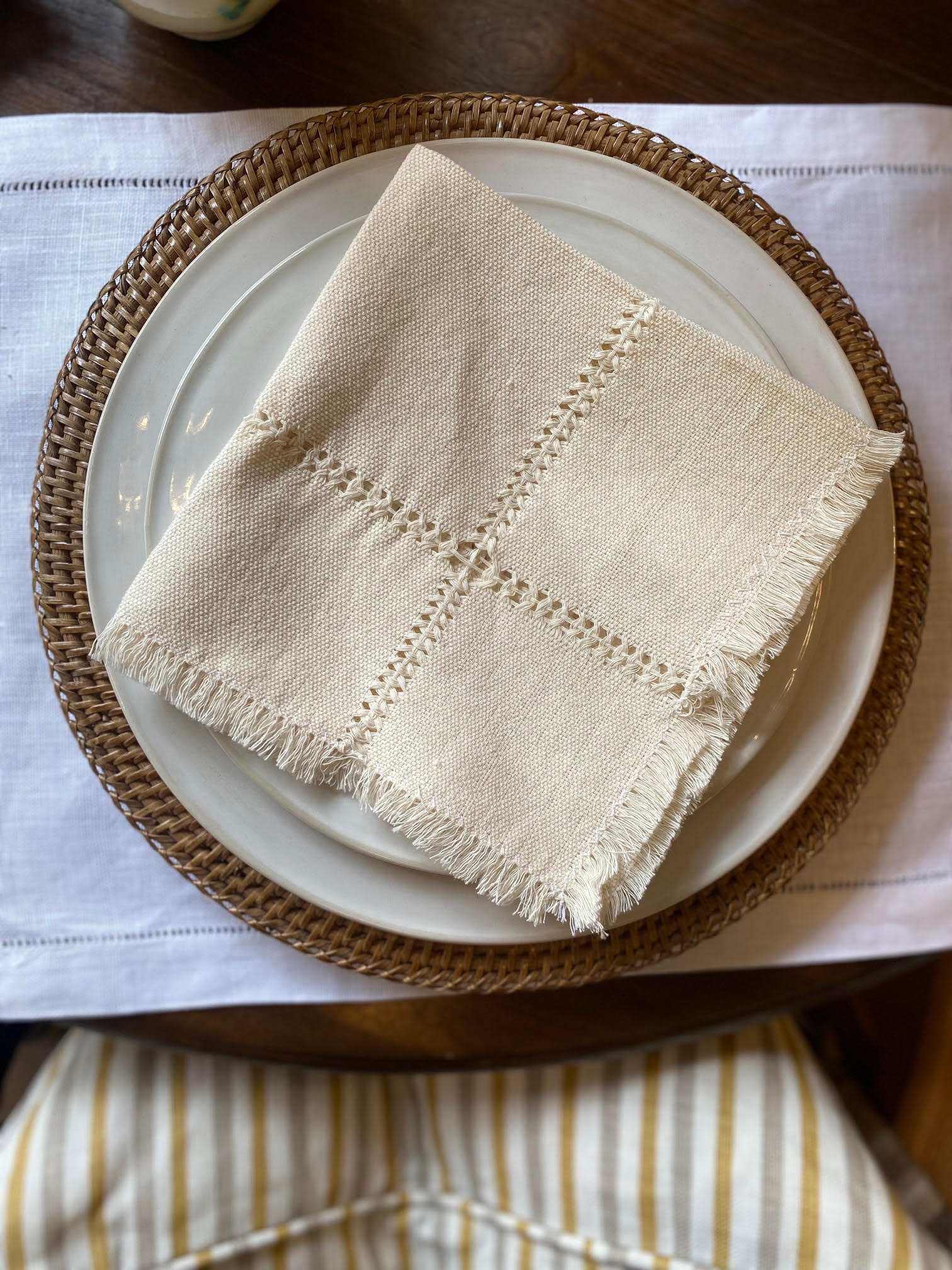 Serviett med frynsekant, kremhvit