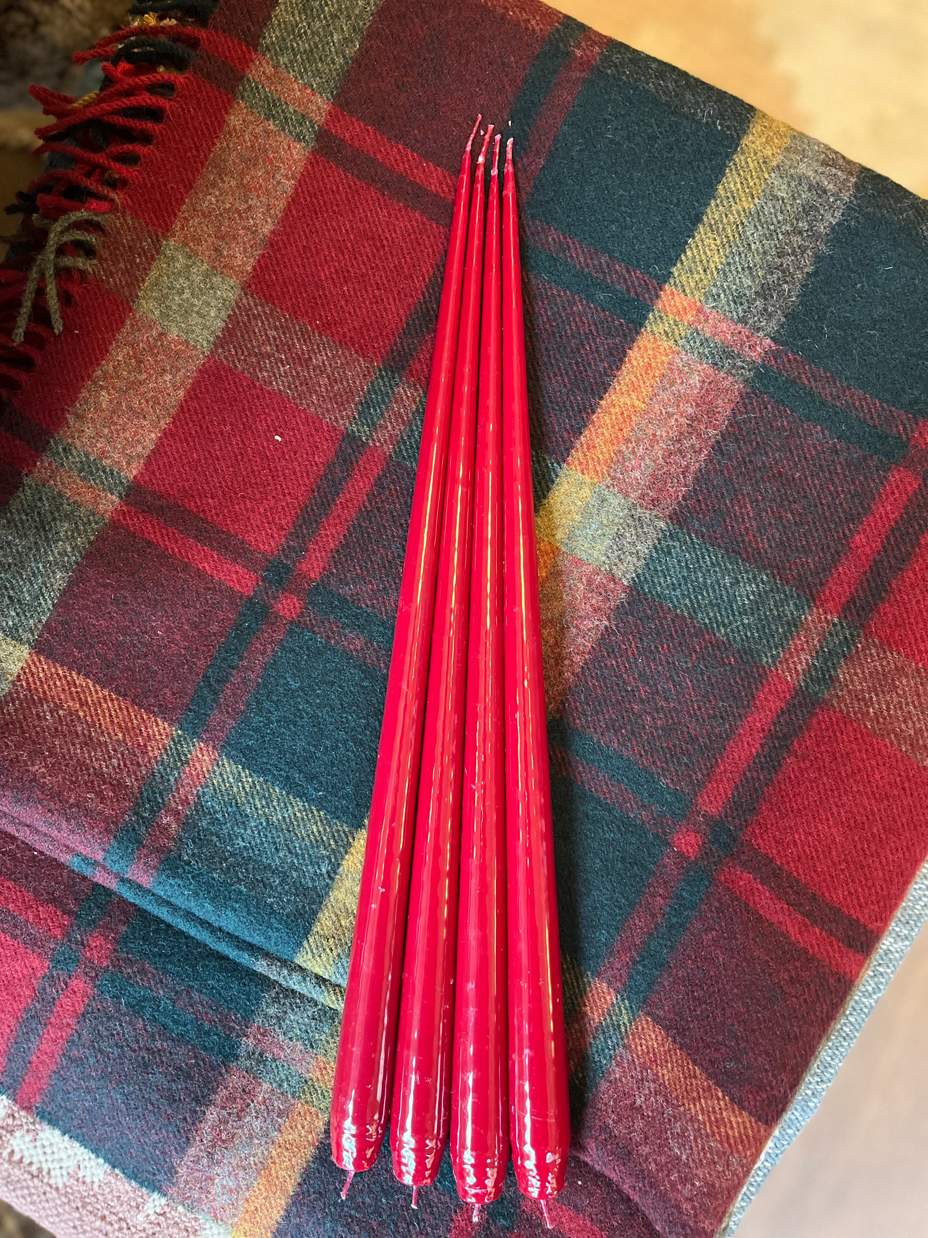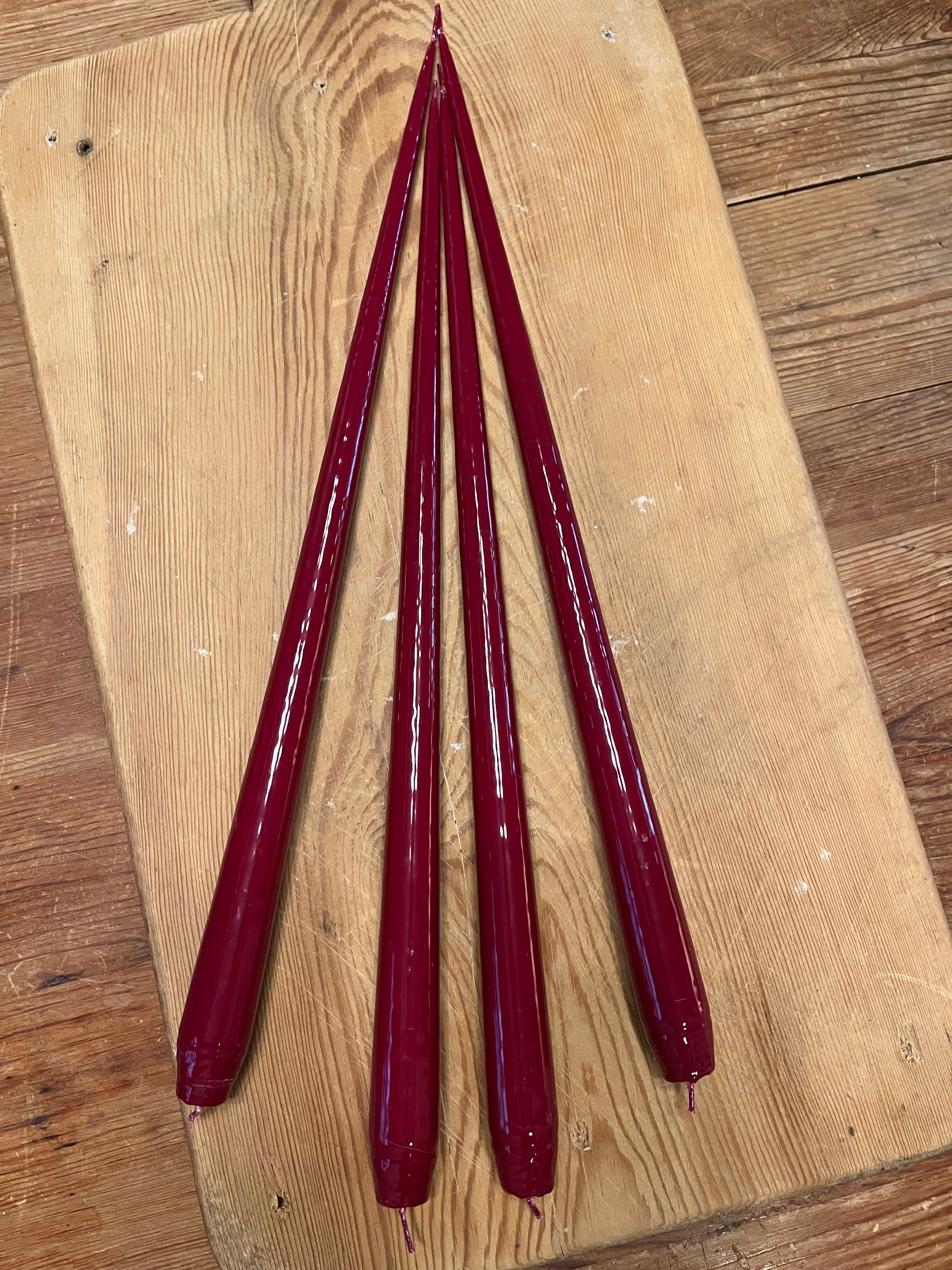 Nydelig lakkerte stakelys, i en dyp rød farge.