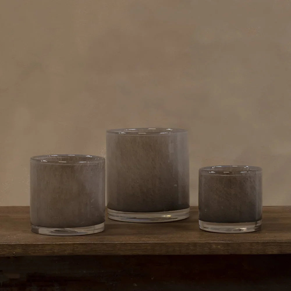 Vakker lyslykt i en behagelig grå-beige farge. Telysholderen er laget av munnblåst glass, ved bruk av en tradisjonell teknikk som gir vakre marmoreringer i glasset. Siden den er håndlaget, er det variasjoner i farge og form som gjør hver lykt unik. Med sin transparente kant nederst får den også et veldig eksklusivt uttrykk.