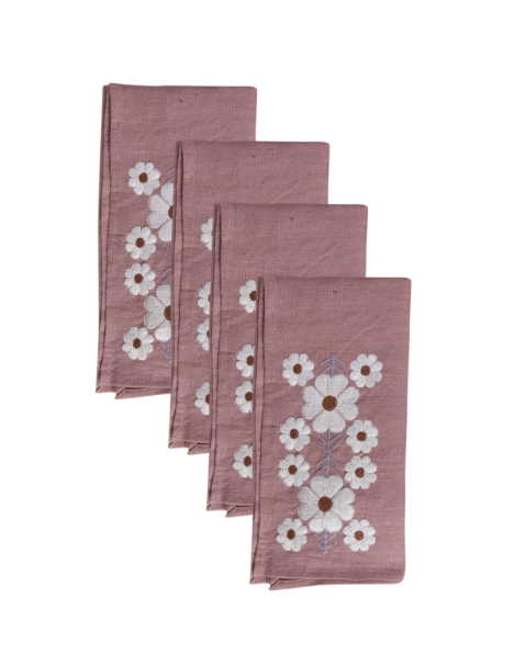 Tulpina serviettene er laget i håndvevd lin, og brodert for hånd. Designet kombinerer tidløs eleganse med en vintage sjarm.