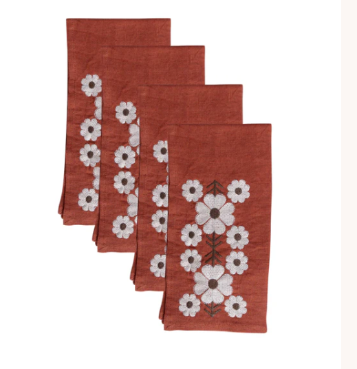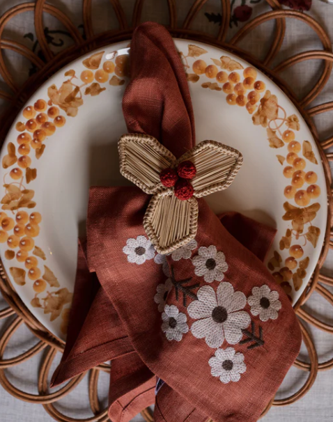 Tulpina serviettene er laget i håndvevd lin, og brodert for hånd. Designet kombinerer tidløs eleganse med en vintage sjarm.