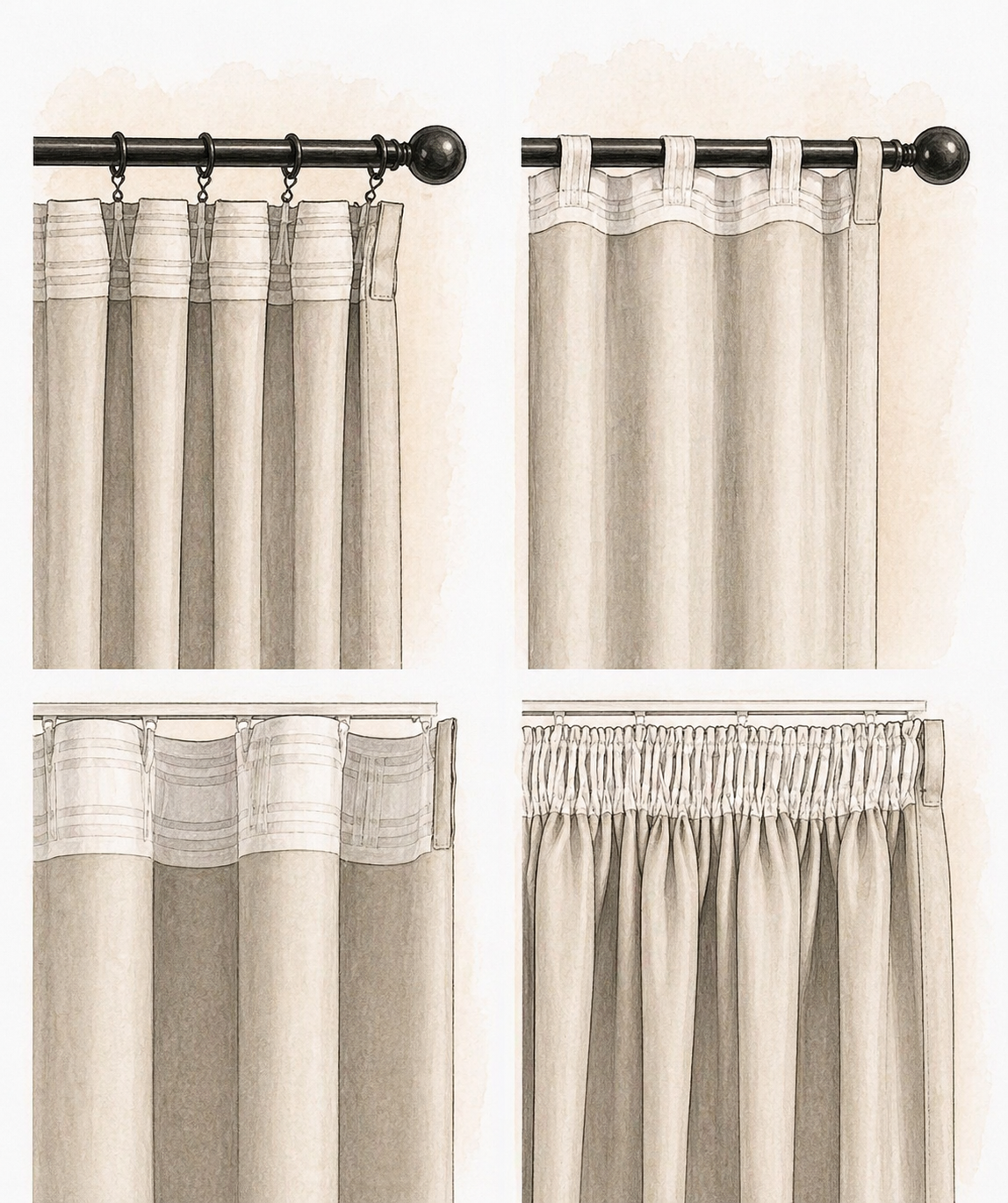 Gardinene er sydd med moonsoon bånd som er et multifunksjonelt transparent gardinbånd med hemper. Båndet sys på toppen av en gardin, og hempene brukes som kanal for å tre den ferdige gardinen på en gardinstang. Dette båndet er ideelt enten du skal lage en ny hempgardin eller oppdatere eksisterende oppheng.