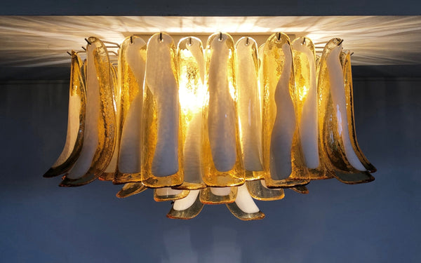 Murano ceiling lamp with 64 caramel lattimo glass petals
