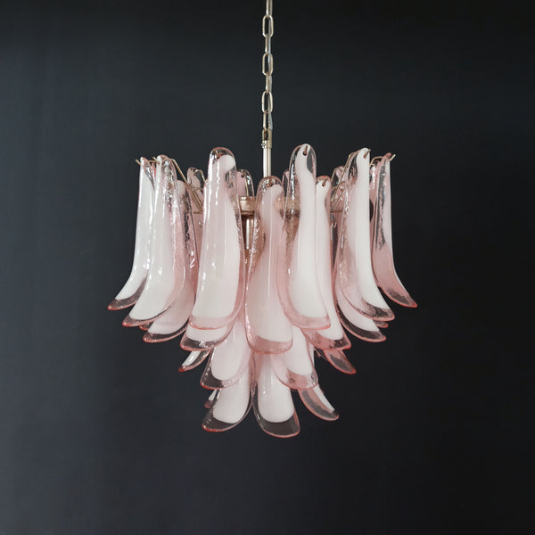 Murano Chandelier - Mazzega with 36 lattimo pink glass petals