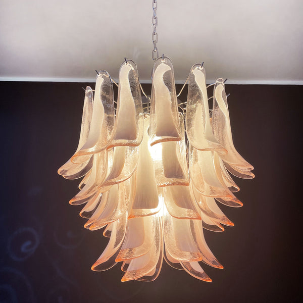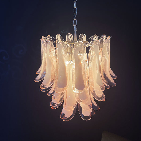 Murano chandelier - Mazzega with 53 pink lattimo glass petals