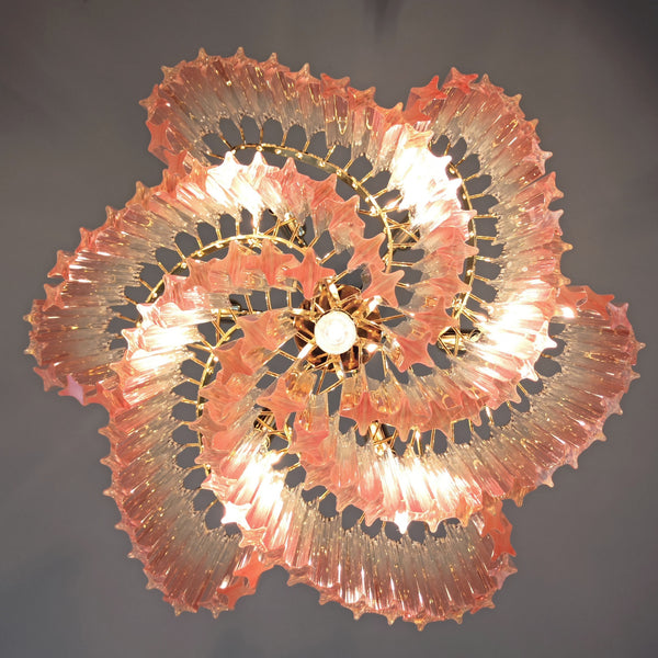 Murano glass Chandelier with 114 shaded pink prism quadriedri