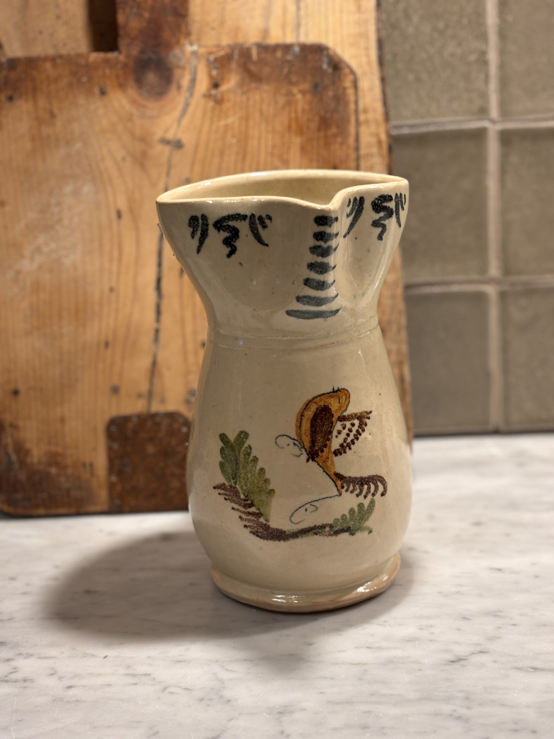 Nydelig hånddekorert karaffel med mønster fra Puglia, Italia. Over 100 år gammel.