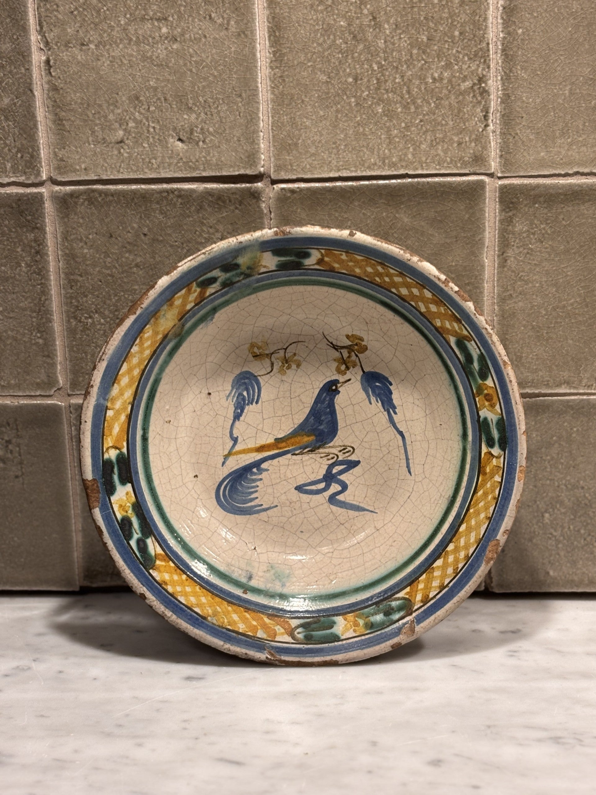 Nydelig hånddekorert tallerken med mønster fra Puglia, Italia. Over 100 år gammelt.