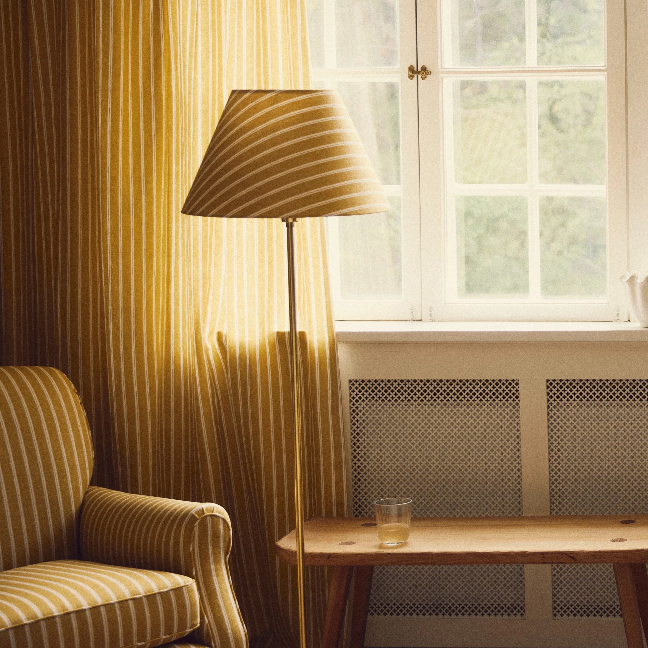 The lampshade is handmade in Stockholm and made from Cathy Nordström's signature linen fabric. Lined with transparent laminated paper. Pattern placement may vary.