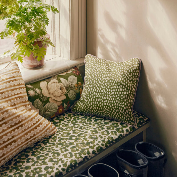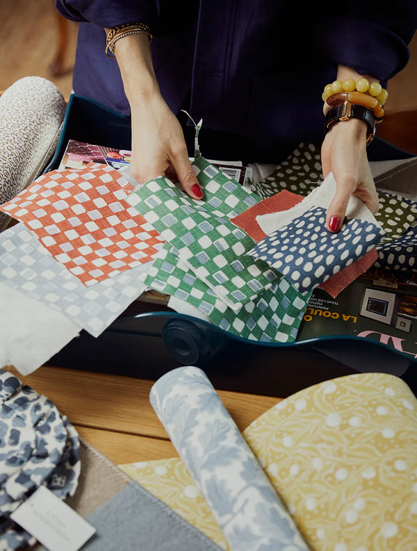 Kolleksjonen er et valg for deg som verdsetter kvalitet, estetikk og håndverkstradisjoner. Utforsk vårt utvalg av eksklusive håndtrykte tekstiler og la deg inspirere av vår lidenskap for farger og mønstre.