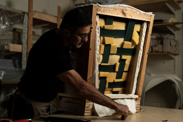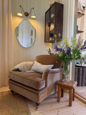 Dette varierer såklart basert på størrelsen av møbelet. Vi pleier å si at en sofa på ca. 2 meter trenger omtrentlig 13 meter stoff. For en stol ala Howard-varianten estimerer vi ca 6.5 meter stoff.