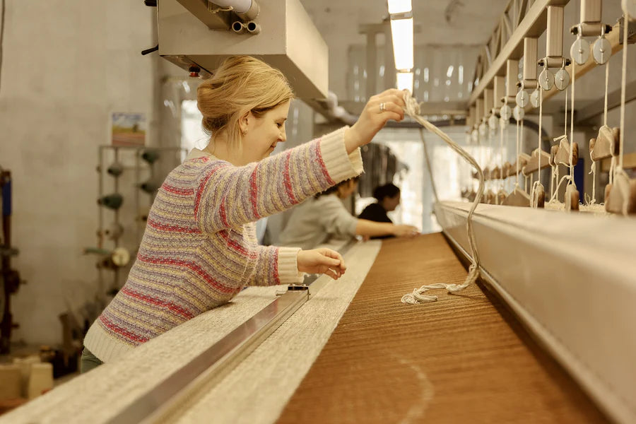 Å veve tepper er en krevende prosess som krever både fysisk innsats og kunstnerisk presisjon. Forberedelse av materialene innebærer å vikle og ordne garn, mens for bomullskolleksjonen farges stoffet, klippes i filler og sys sammen. Disse fillene – eller ullgarnet i ullkolleksjonen – plasseres deretter forsiktig i vevstolen for hånd.